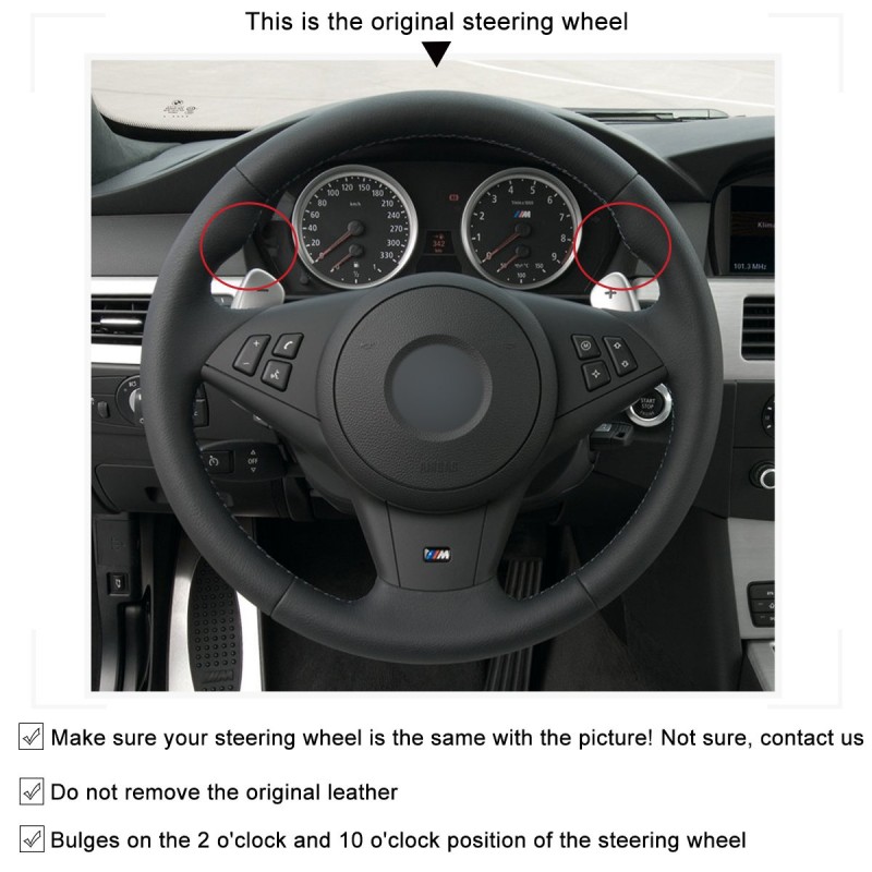 √ Suitable Vehicle:for BMW E60 M5 2005-2008 E63 E64 Cabrio M6 2005-2010 Accessories (with bulges + M Mark on Steering Wheel, Genuine Leather) (This car model name are only for reference, only you have the same steering wheel, it will fit )