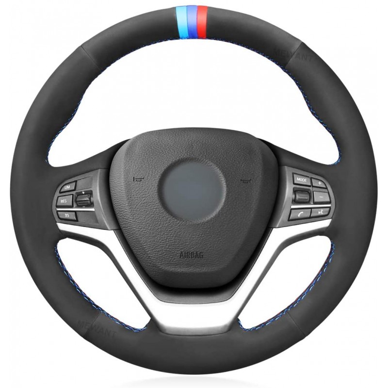 Loncky Auto Custom Fit OEM Black Genuine Leather Car Steering Wheel Cover for BMW X5 F15 2014-2018 / X5 M F85 2014-2018 / X6 F16 2015-2019 / X6 M F86 2015-2019 Accessories