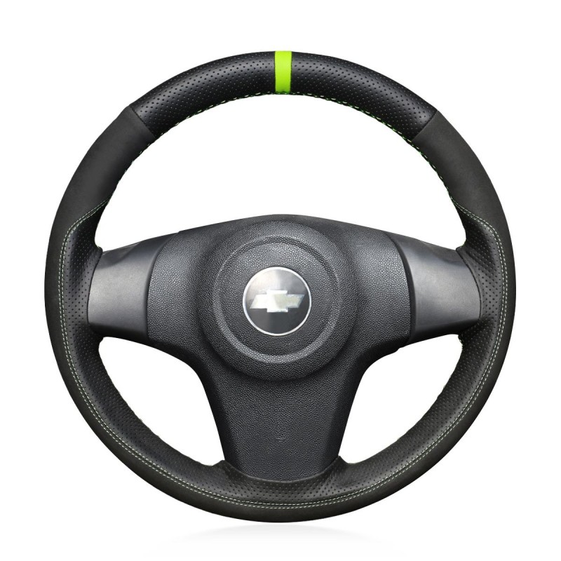 Loncky Auto Custom Fit OEM Black Genuine Leather Suede Car Steering Wheel Cover for Chevrolet Niva 2009-2017 (3-Spoke) for Opel Corsa (D) 2006-2015 for Vauxhall Corsa (D) 2006-2015 Accessories