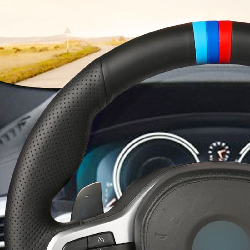 Loncky Auto Custom Fit OEM Black Genuine Leather Car Steering Wheel Cover for BMW G30 525i 530i 530d M550i M550d 2017 2018 G32 630i 640i M 2017 2018 Accessories