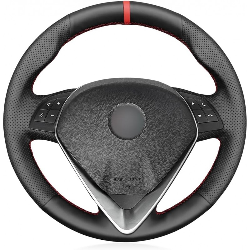 Loncky Black Genuine Leather Steering Wheel Cover for Alfa Romeo Giulietta 2014-2021 / MiTo 2014-2019 Car Interior Accessories