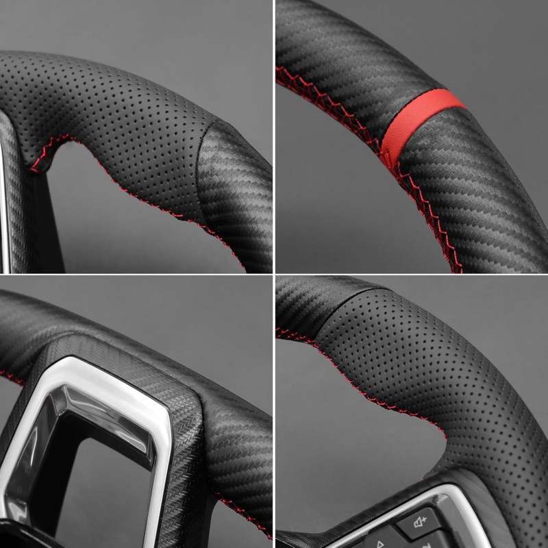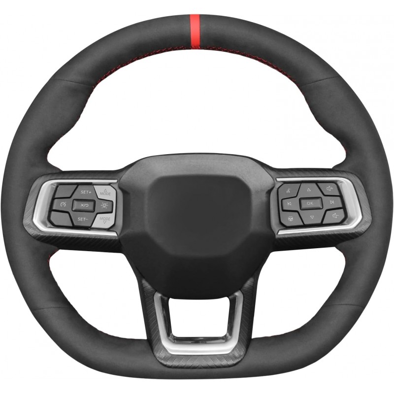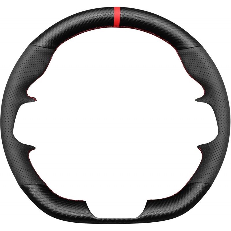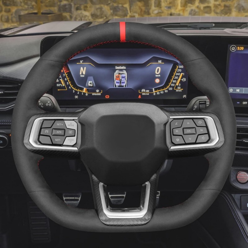 Loncky Steering Wheel Cover for Mustang 2024 Black Genuine Leather Microfiber Leather Carbon Fiber Car Hand Stitched Interior Accessories